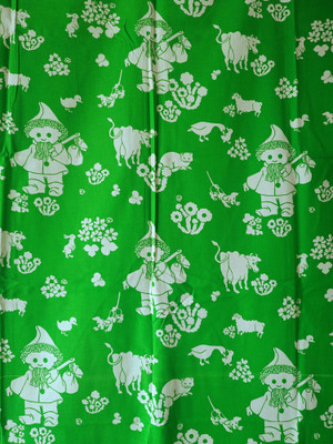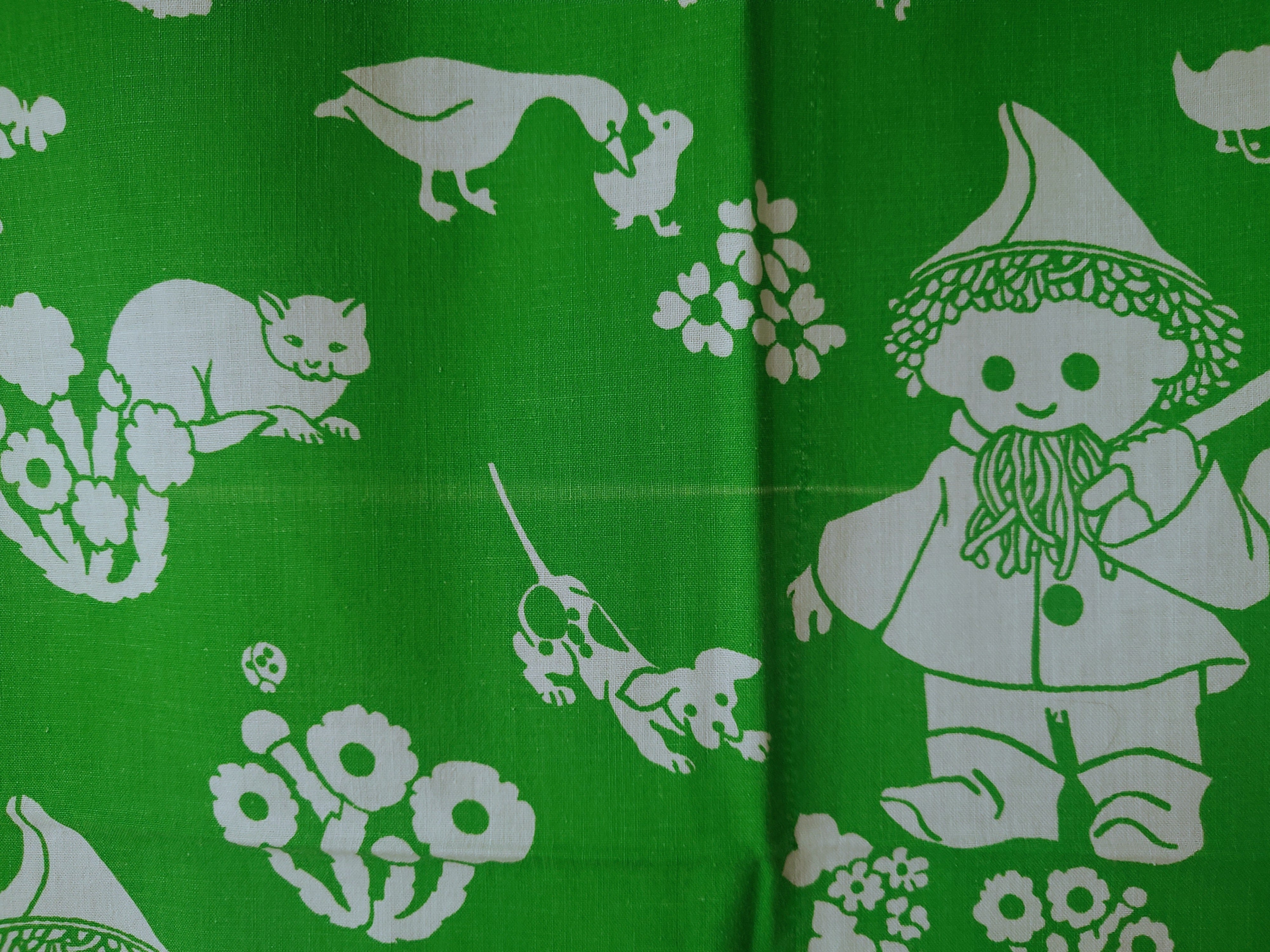 Sympaattinen vihreä Nukkumatti lakana tai verho 1970-luvulta.