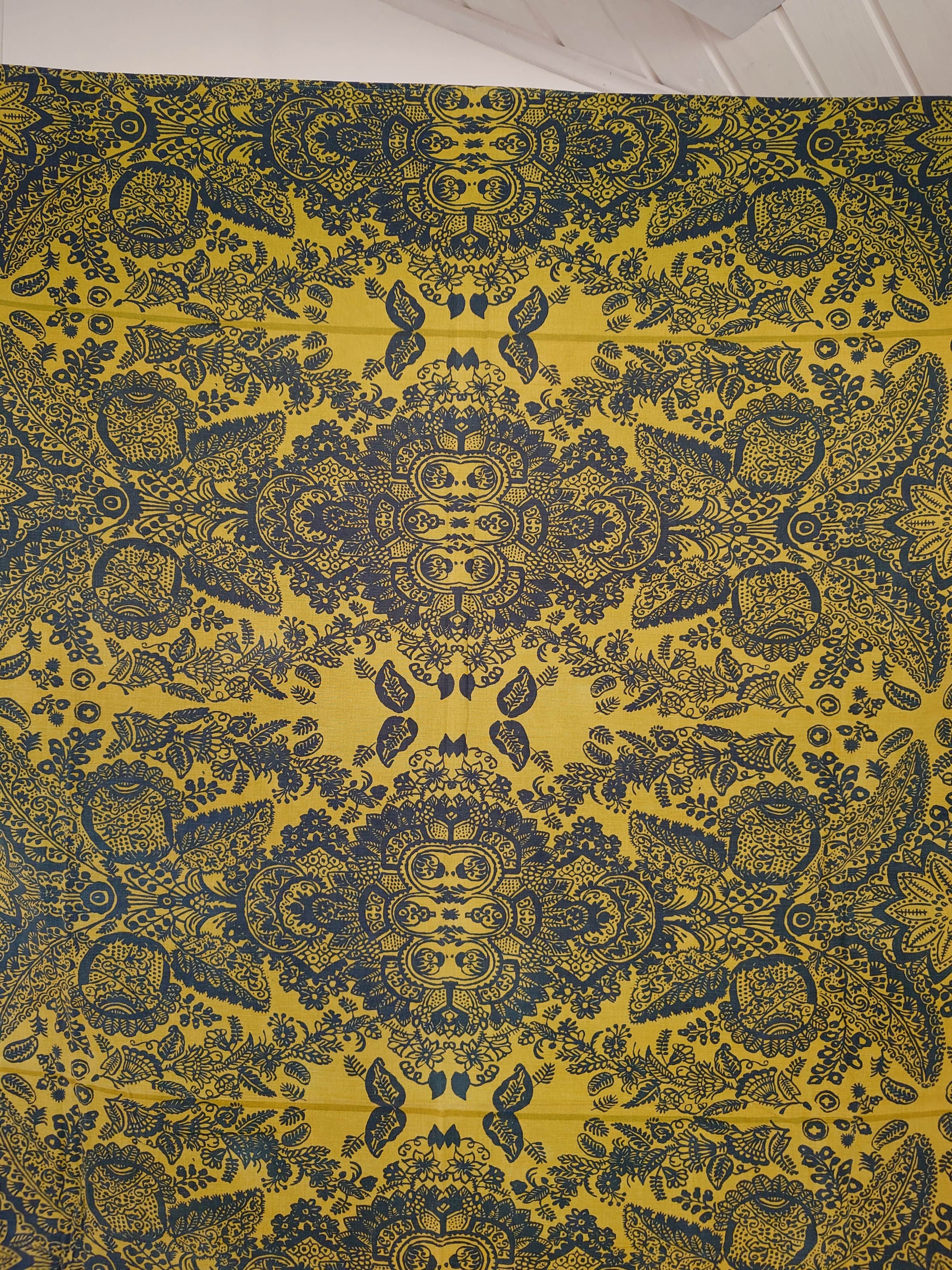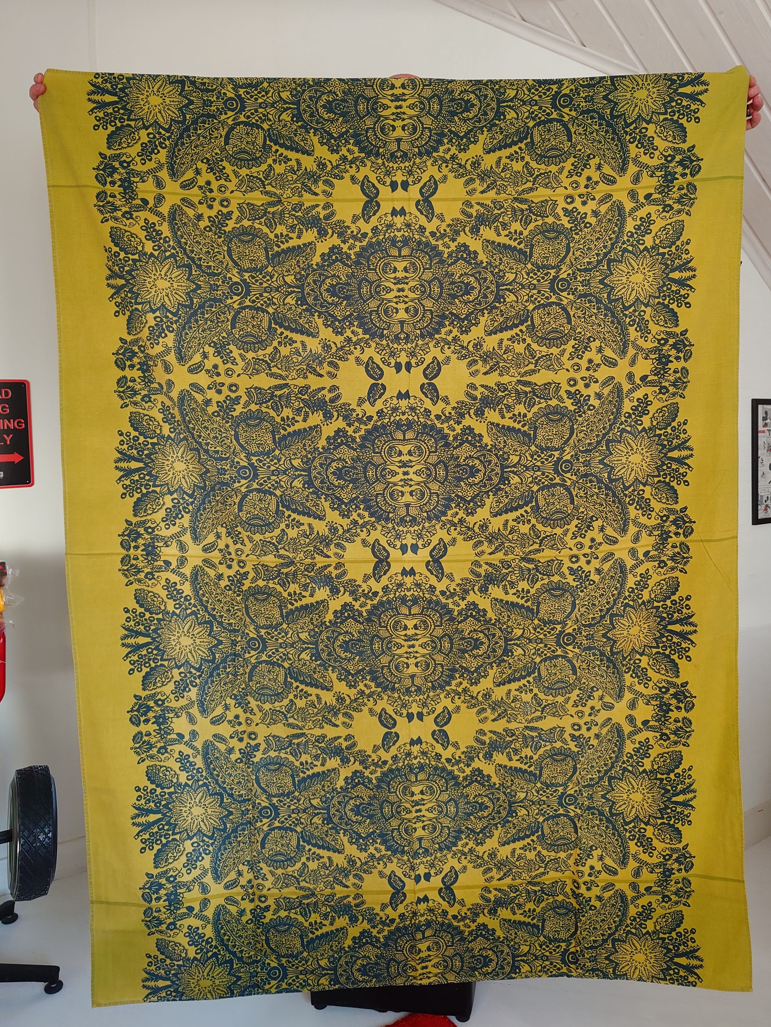 1970-luvun kuviollinen pöytäliina puuvillaa.