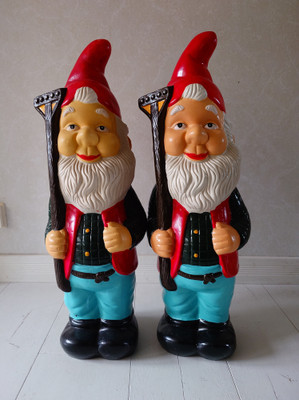 Veljekset kuin ilvekset, tai ainakin kaksoset. Nämä isot keraamiset tontut ovat 1990-luvulta Tiimarin mallistoa. Sopivat koristeeksi sisälle tai miksei ulos terassille sateensuojaan. Maalit eivät ehkä kestä taivasalla olemista.
