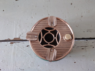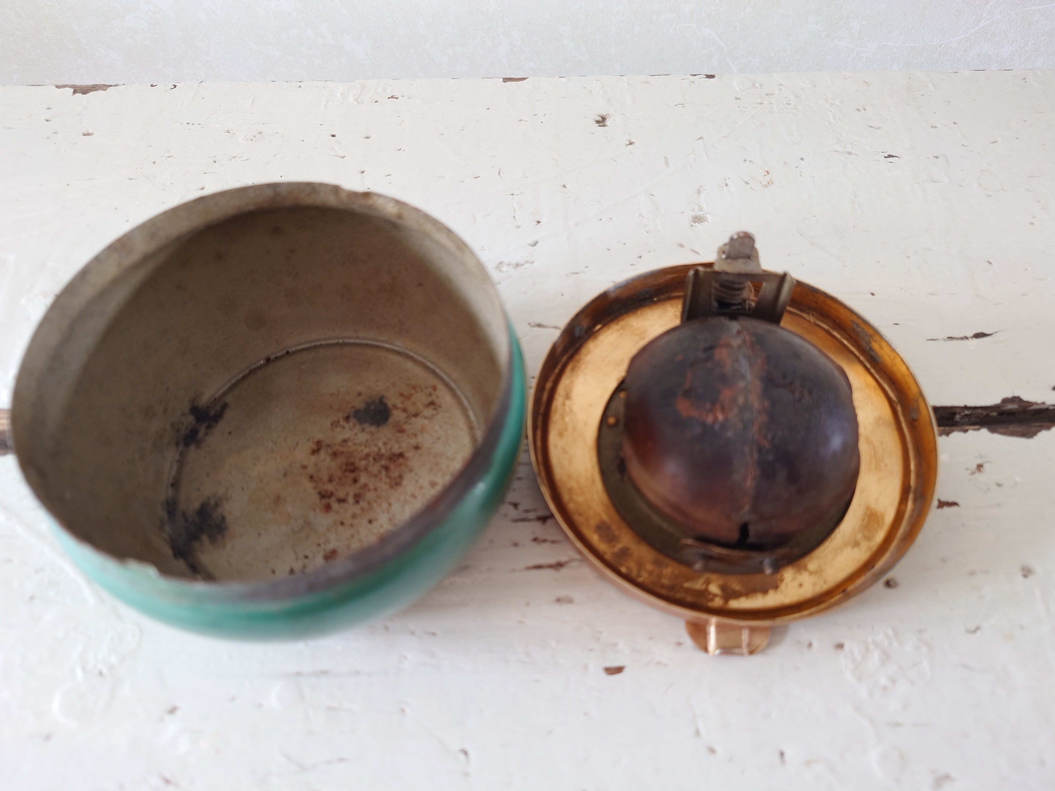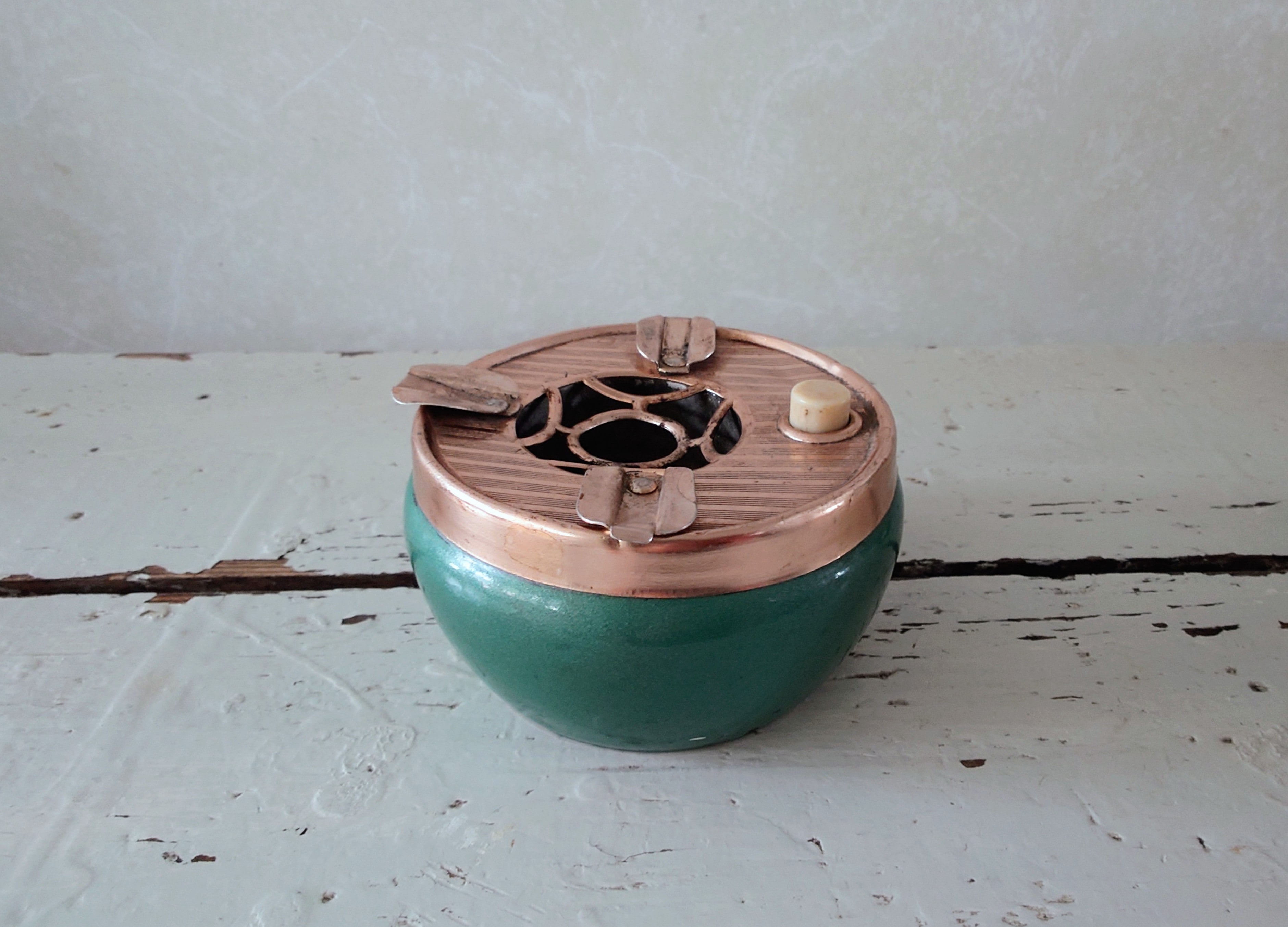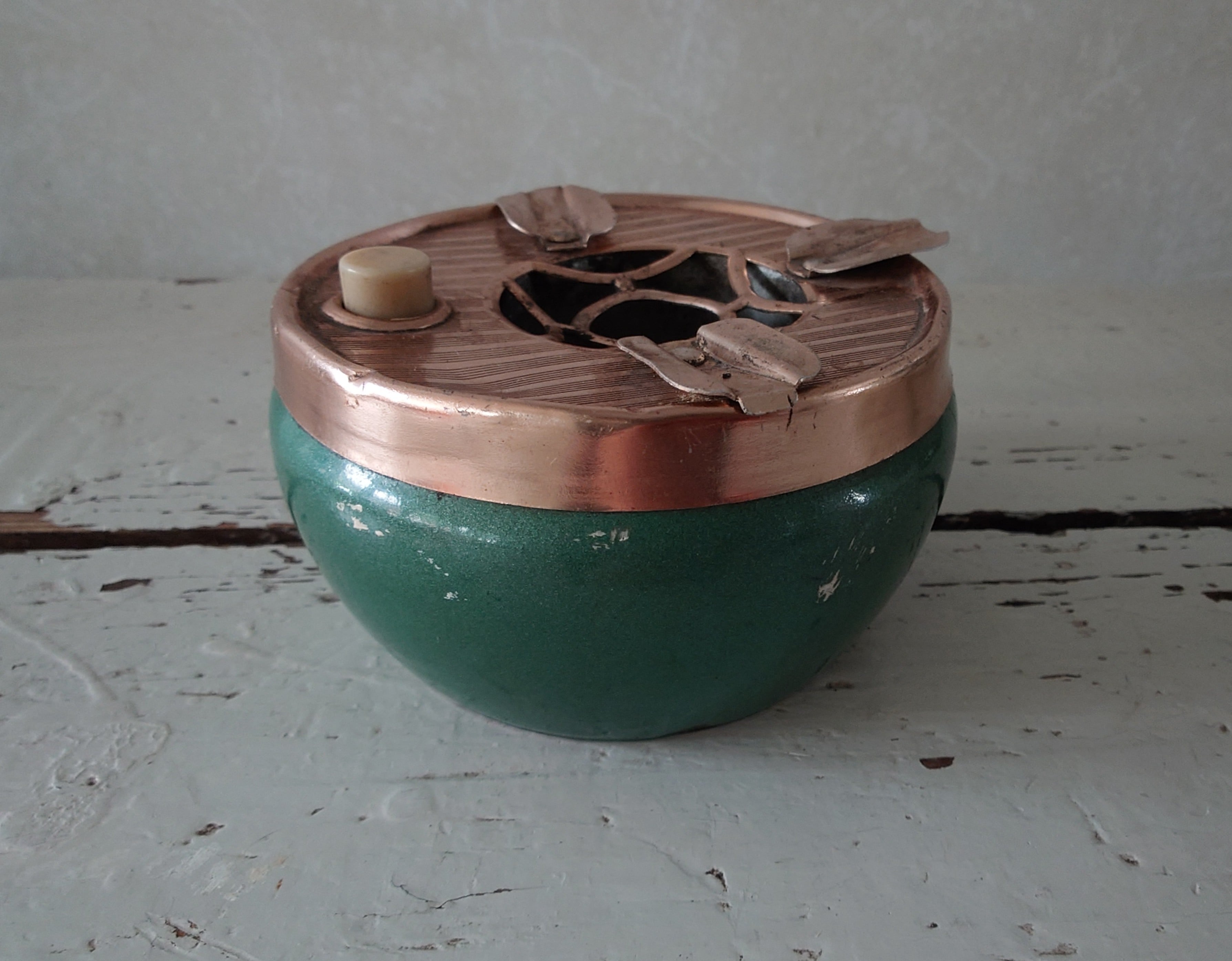 Vanha metallinen tuhkakuppi. Kansi kuparia.
